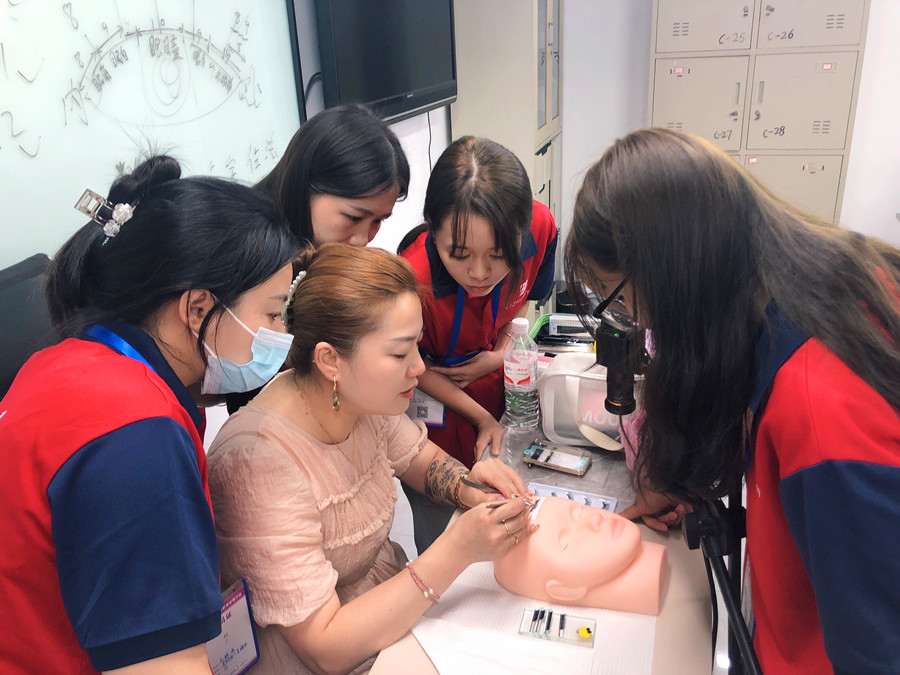 很多人以為仿皮只會(huì)在紋繡學(xué)習(xí)中運(yùn)用到,其實(shí)在學(xué)美睫的時(shí)候也需要用到仿皮。南寧美睫培訓(xùn)班(麗竹美睫學(xué)校)的課堂上,學(xué)員們通過(guò)用仿皮練習(xí)的方式,便可以將所學(xué)知識(shí)快速進(jìn)行實(shí)踐并提高嫁接技術(shù),遇到不懂的地方也可以向老師求解,解決當(dāng)堂隨時(shí)能遇到的技術(shù)問(wèn)題。