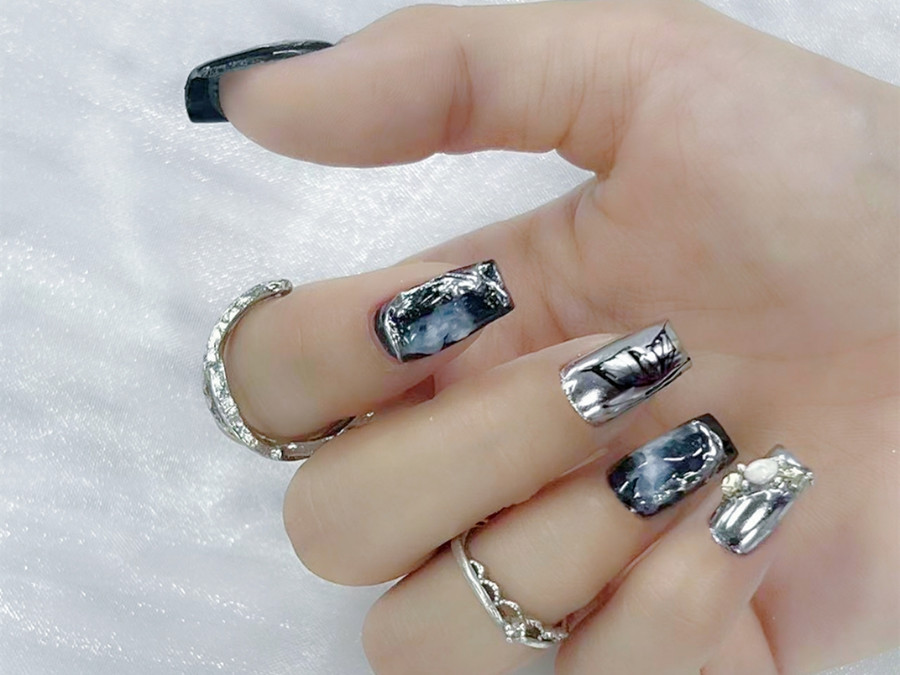 黑色系ins風美甲,廣西美甲名校款式介紹