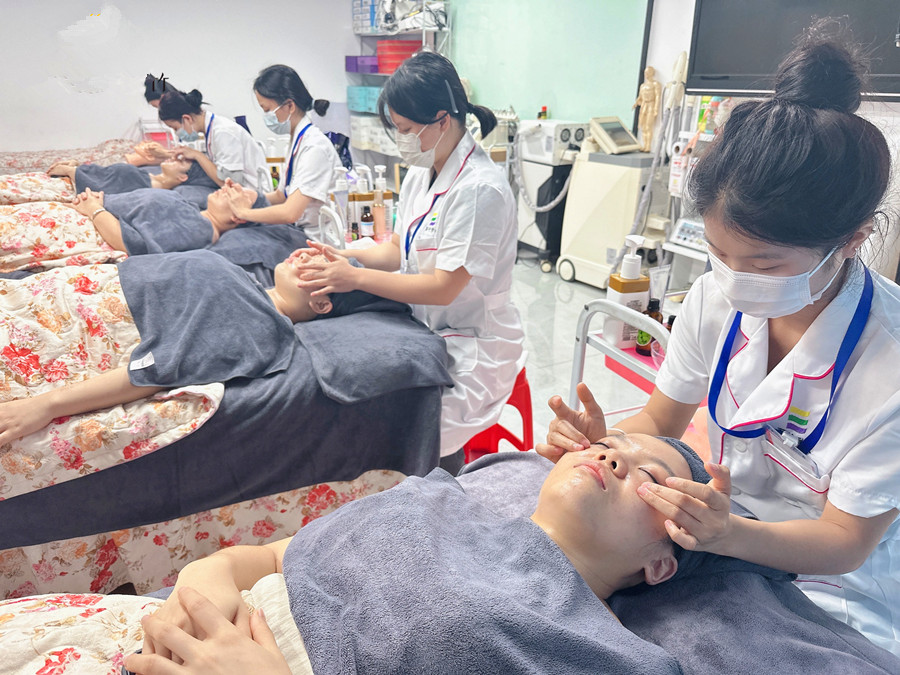 南寧美容專業(yè)教學(xué)課件:面部按摩,其實(shí)就是指在整個(gè)面部涂上潤(rùn)膚霜后,為了讓皮膚可以快速吸收護(hù)膚品中的營(yíng)養(yǎng)成分,所以需要美容師通過(guò)外力,使用一定的輕柔手法進(jìn)行xue位按摩,使人面部的疲勞得以恢復(fù),面部輪廓更加清晰,面部皮膚更加光潤(rùn)。