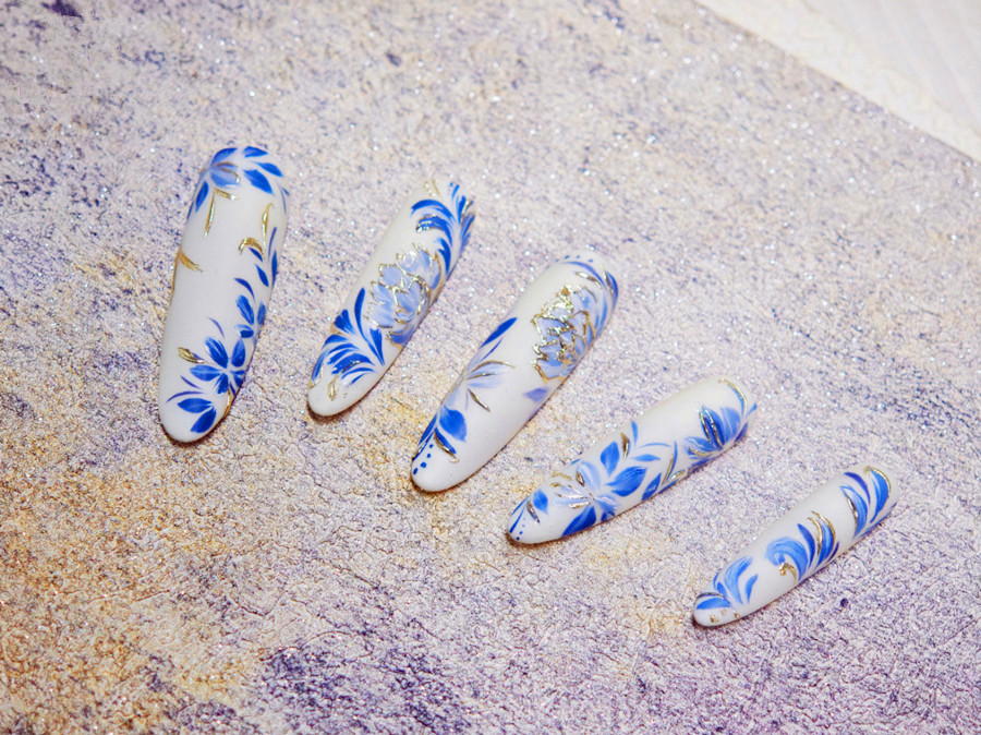青花瓷美甲