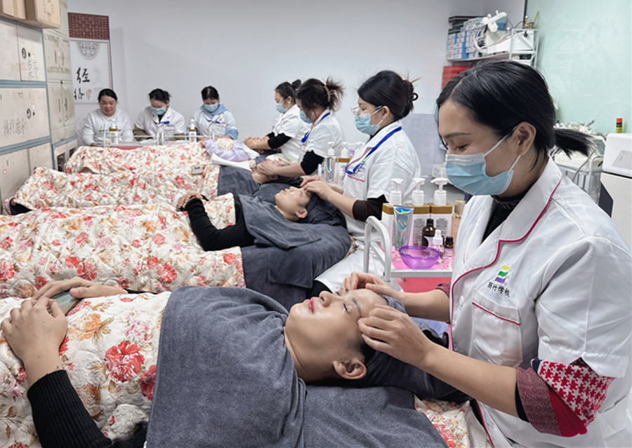 面部護(hù)理包含洗臉,按摩,撥筋,刮(sha)痧,敷膜,艾灸的項(xiàng)目,通過假頭模練習(xí),再到真人實(shí)操,兩者需要相互結(jié)合才能更好的發(fā)揮作用。