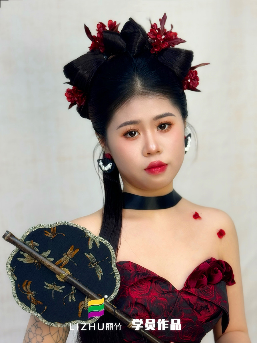 南寧化妝高彩、南寧高彩化妝學(xué)校(麗竹高彩化妝學(xué)校)學(xué)員作品---新中式造型。之前如果曾因為學(xué)費,課時等原因一直在猶豫不決?南寧高彩化妝學(xué)校推薦你可以趁著麗竹高彩化妝學(xué)校正在進(jìn)行學(xué)費特惠活動,趕緊到校了解詳情,參觀和試聽。