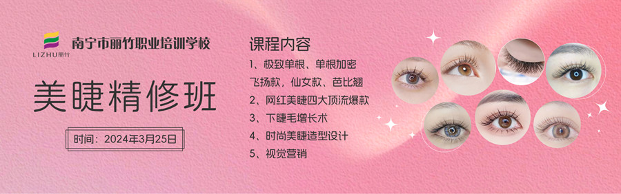 因此,如果你想在廣西學美睫技術,或是想知道廣西教美睫哪里時尚?麗竹美睫精修班將在3月25日開班,感興趣的你趕緊聯(lián)系我們進班試聽吧!