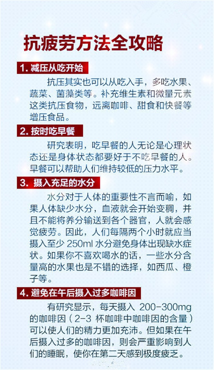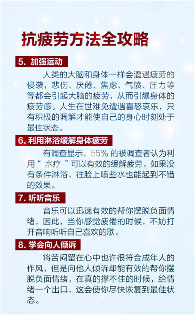 南寧正規(guī)美容學(xué)校:過度疲勞正在侵蝕著大部分人的身體健康,也經(jīng)常會(huì)在報(bào)道上看到因?yàn)檫^勞致死的消息。那么,在沒有辦法休息的情況下,有沒有什么方法可以抵抗疲勞呢?
