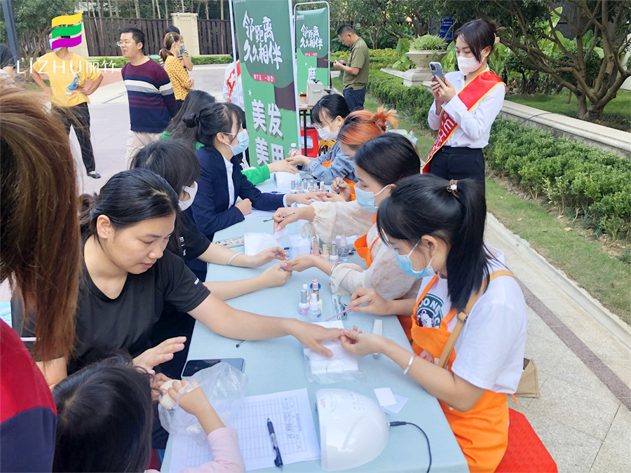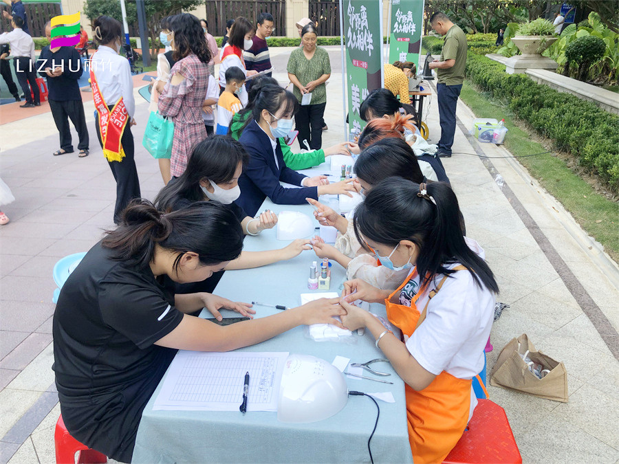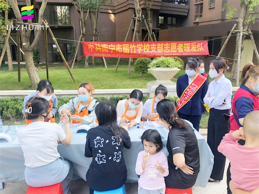 美甲外出實操、南寧美甲公益活動分享:10中旬的南寧,早上已經(jīng)感到很明顯的涼意,但在新希望社區(qū)的花園廣場上,卻熱火朝天,人聲鼎沸,仿佛入秋的涼意從未在這里停留。而在這里,南寧美甲學(xué)校-麗竹學(xué)校美甲專業(yè)在黨支部的帶領(lǐng)下,正在為居民們進行美甲公益活動。