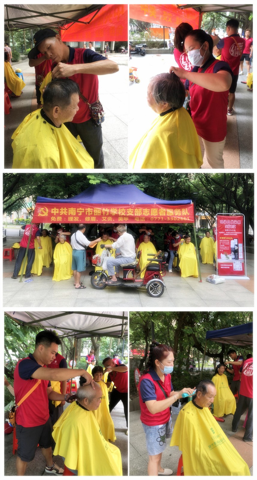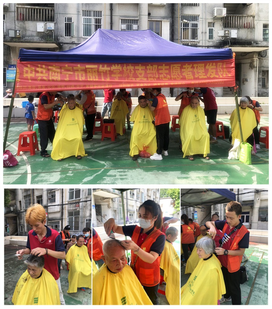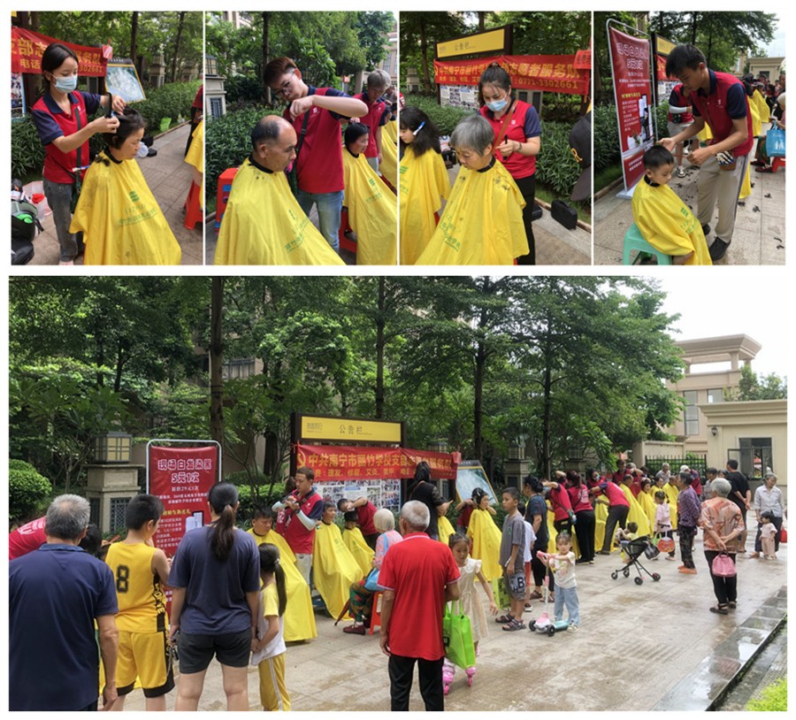 ?小區(qū)免費理發(fā)公益活動,廣西美發(fā)職業(yè)技術(shù)學(xué)校在進行