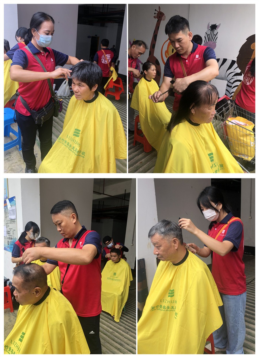 小區(qū)免費(fèi)理發(fā)公益活動,南寧美發(fā)學(xué)校志愿者在行動