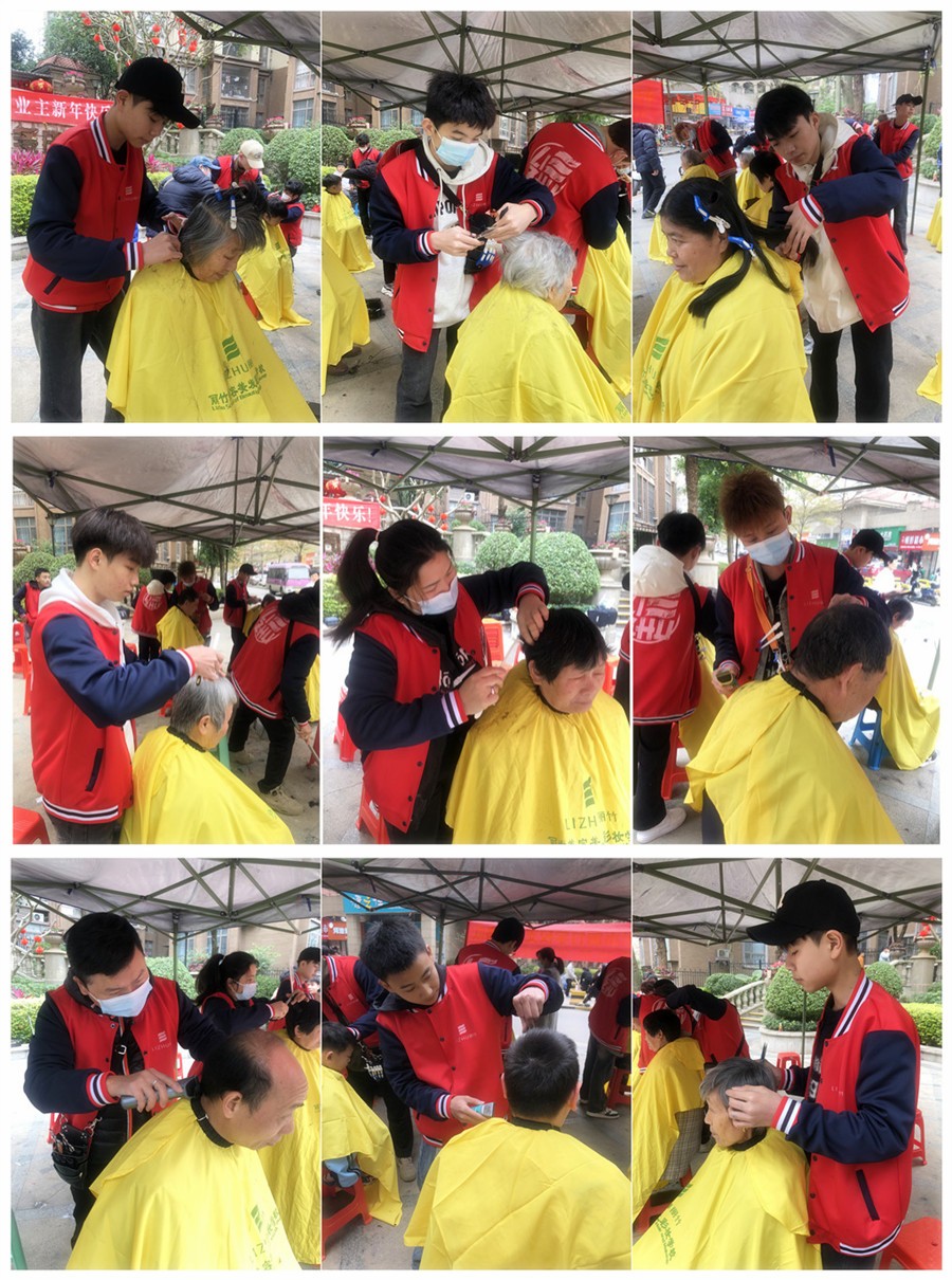 廣西理發(fā)實踐、廣西美發(fā)社會活動免費:3月初始,廣西理發(fā)師學校(麗竹美發(fā)學校)-廣西美發(fā)培訓班的志愿者們在黃老師的帶領下,不畏嚴寒,來到普羅旺斯小區(qū)為居民們送上了暖冬的慰問,在中心廣場上舉行免費理發(fā)活動。