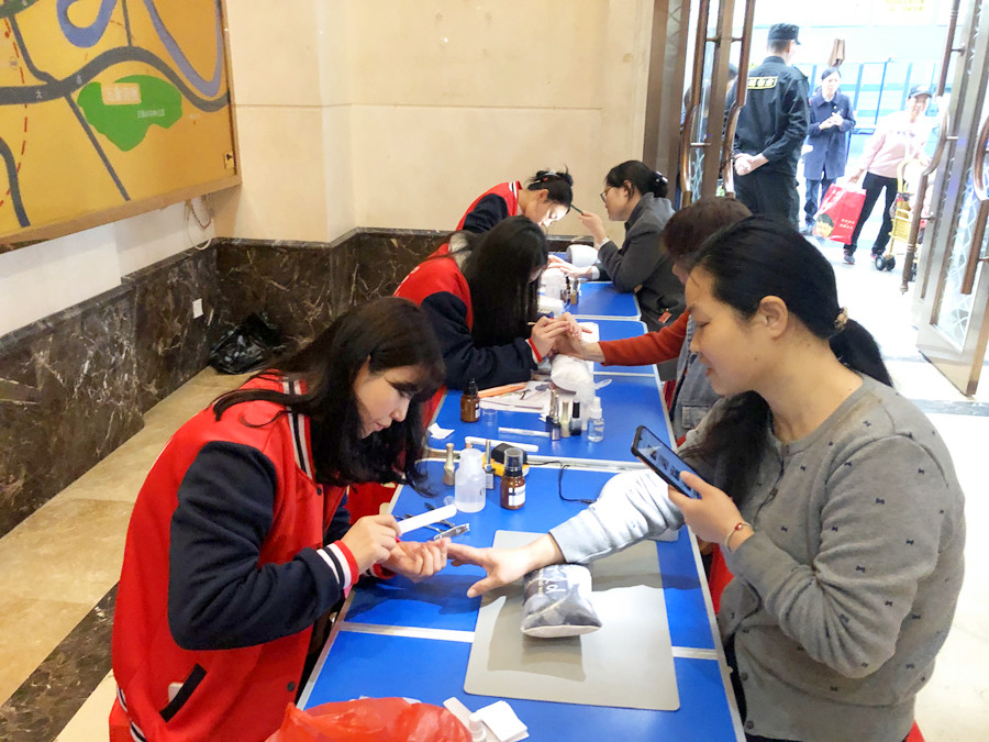 南寧美甲外出實(shí)踐、美甲實(shí)踐活動(dòng):三月,是“學(xué)雷鋒”活動(dòng)月。南寧美業(yè)職業(yè)技能學(xué)校-麗竹學(xué)校組織各班志愿者奔走于市區(qū),城鎮(zhèn)周邊部,為大家提供力所能及的服務(wù)。近日,在黃老師的帶來(lái)領(lǐng),南寧美甲師造型班的志愿者們就來(lái)到華南城為居民進(jìn)行免費(fèi)美甲。