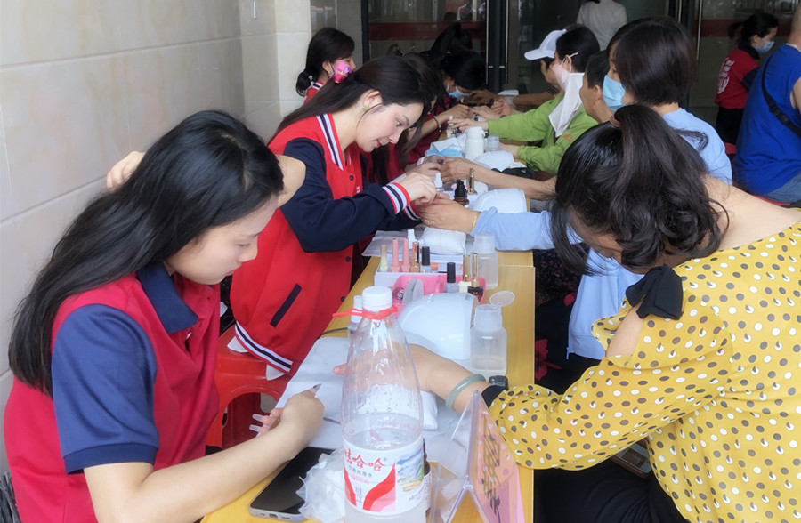 南寧美甲外出實踐報告總結、南寧美甲學校實踐:正值“五一國際勞動節(jié)”到來之際,南寧美甲職業(yè)學校(麗竹美甲職業(yè)學校)組織南寧美甲志愿者服務隊,來到古城路社區(qū)進行愛心美甲活動,以實際行動致敬每一個努力奮斗的平凡者!