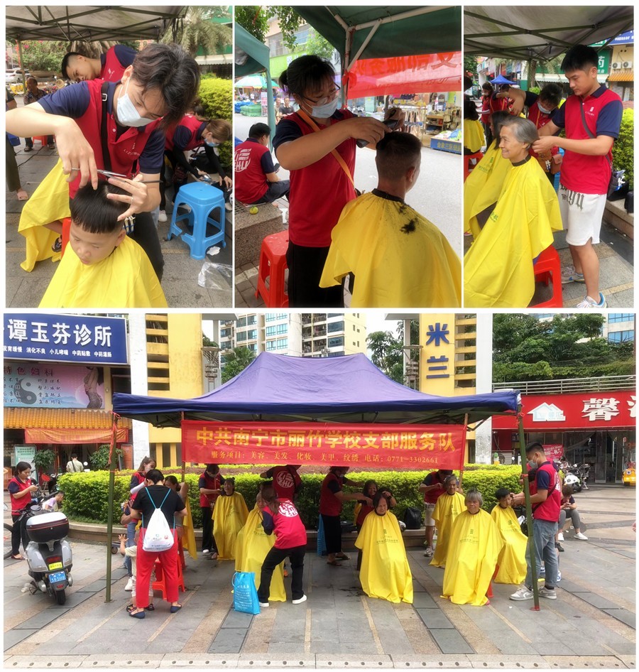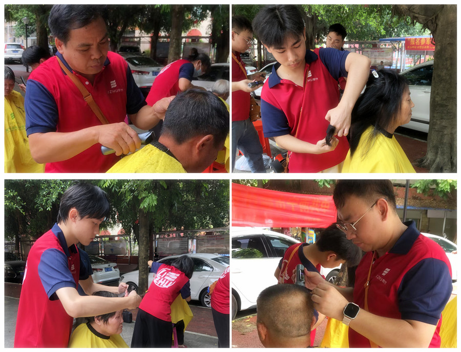 廣西美發(fā)義剪、廣西美發(fā)剪發(fā):隨著氣溫的日益升高,南寧市氣象中心也發(fā)布了高溫預(yù)警。面對滾滾襲來的熱浪,廣西美發(fā)剪發(fā)職業(yè)學(xué)校(麗竹美發(fā)剪發(fā)職業(yè)學(xué)校)的同學(xué)們在老師的帶領(lǐng)下,來到各大小區(qū)進(jìn)行外出教學(xué)實踐之余,也為居民送去夏日清涼,免費為大家進(jìn)行理發(fā)服務(wù)。