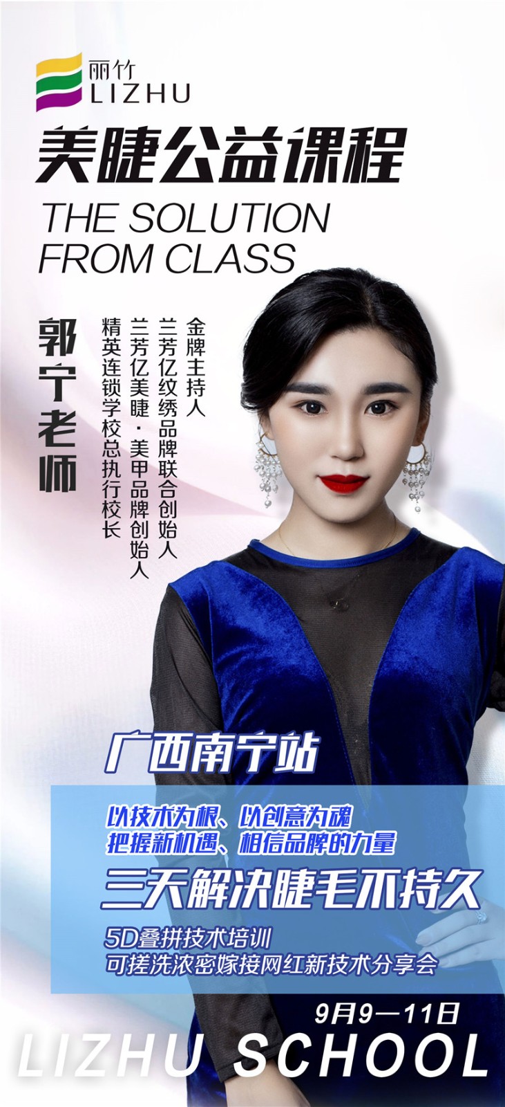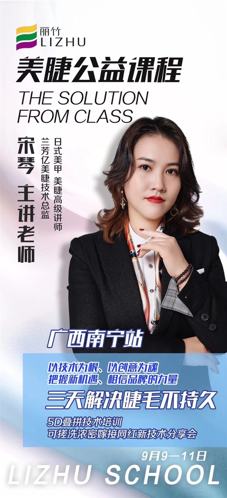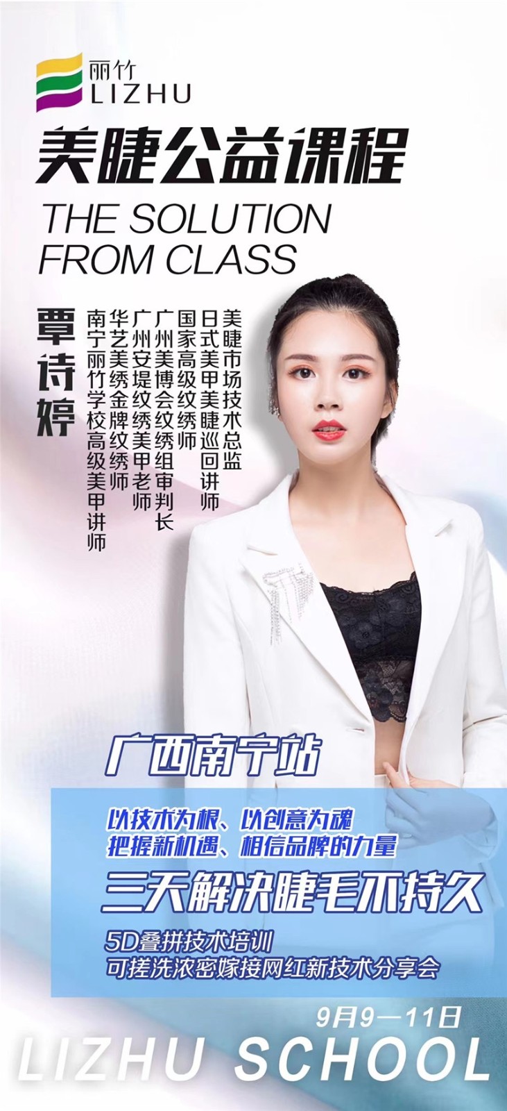無論你對你的美睫有多少疑慮和憂心,9月9日-11日,廣西·南寧站麗竹學(xué)校將舉辦一場大型的“美睫公益課程”,教你全方位認(rèn)識你的美睫,以及時(shí)下流行的美睫技術(shù)。