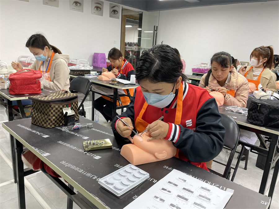 學(xué)員在假頭模進行嫁接睫毛練習