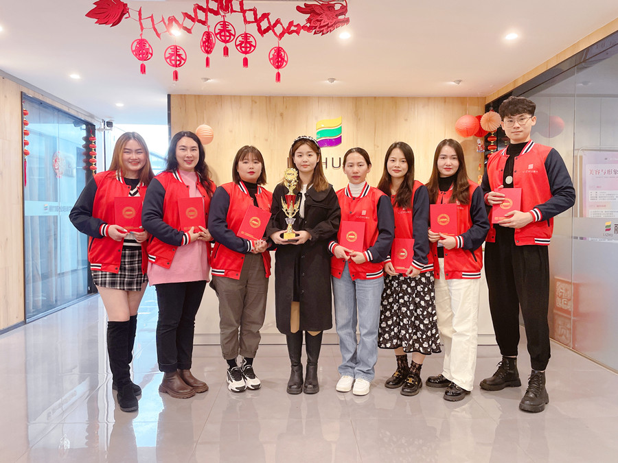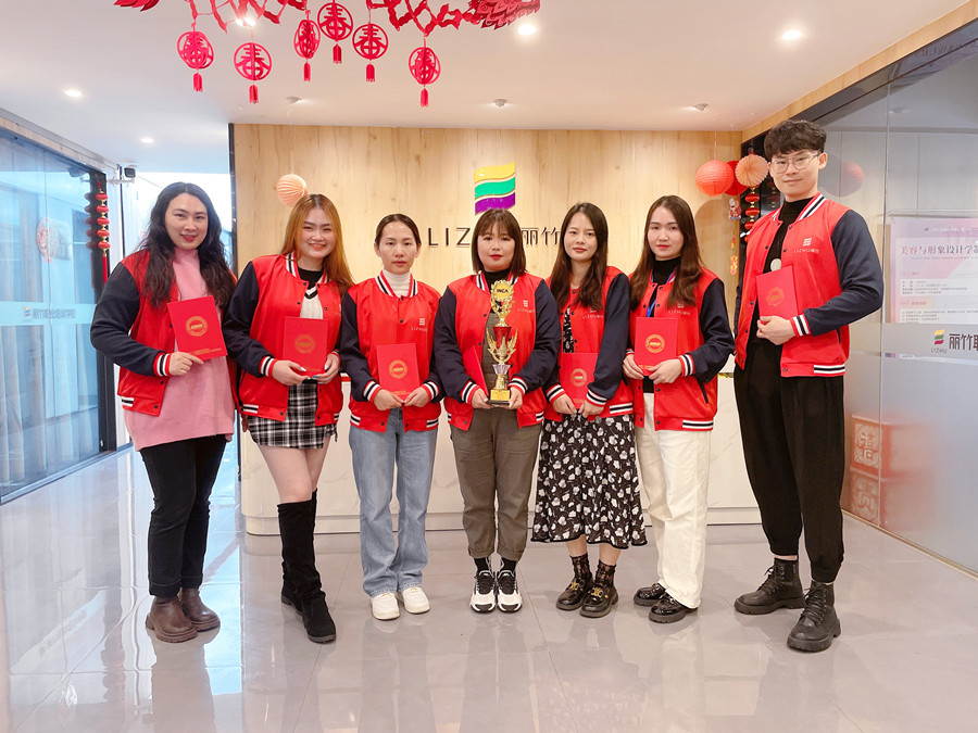 麗竹學(xué)校美甲專業(yè)代表隊(duì)與賽前指導(dǎo)姚老師合影